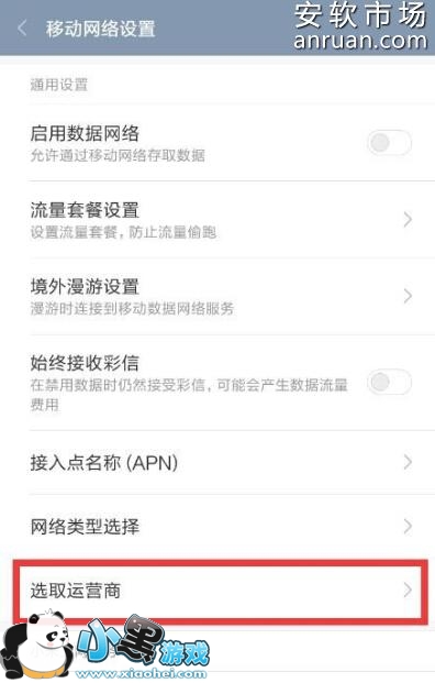 7、此外,还有一种解决小米手机无信号的方法,就是重新设置“网络运营商”:在“设置”-“移动网络”界面中,点击“选项运营商”项进入。