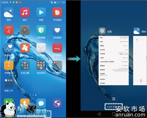 很明显,4G的运行内存里,小编用了不到一半,可以说当前应用运行应该也算顺畅~当然如果你有清理强迫症,也完全可以点击上图中的**桶图标,一键关闭非受保护的后台应用,释放RAM内存。