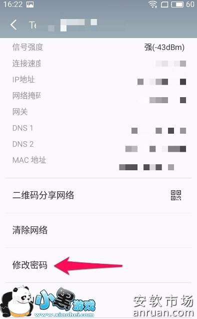 6、当然也可以直接点击进入WIFI详细信息界面,找到修改密码,如下图所示