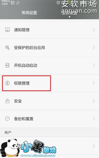 2、进入到设置界面以后,点击全部设置,找到权限管理这个功能并点击进入,如下图所示