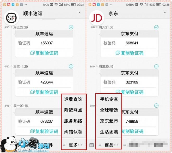 在短信界面的底部,新增了菜单功能,一键轻松接入第三方服务。不用跳出短信界面,即可操作分期付款、信用卡还款、话费充值、流量订购、航班查询、物流查询等功能。