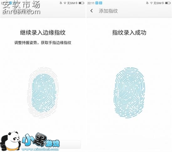 跟其他指纹手机一样,在设置指纹之前需要给手机的设定解锁密码,用户可以选择图案和数字两种密码方式,其实用过指纹手机的朋友都知道,只所以需要设置锁屏密码主要是为了防止指纹识别失败而可以选择密码方式解锁。