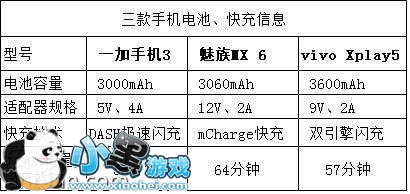 一加3、vivo Xplay5、魅族MX6快充手机规格