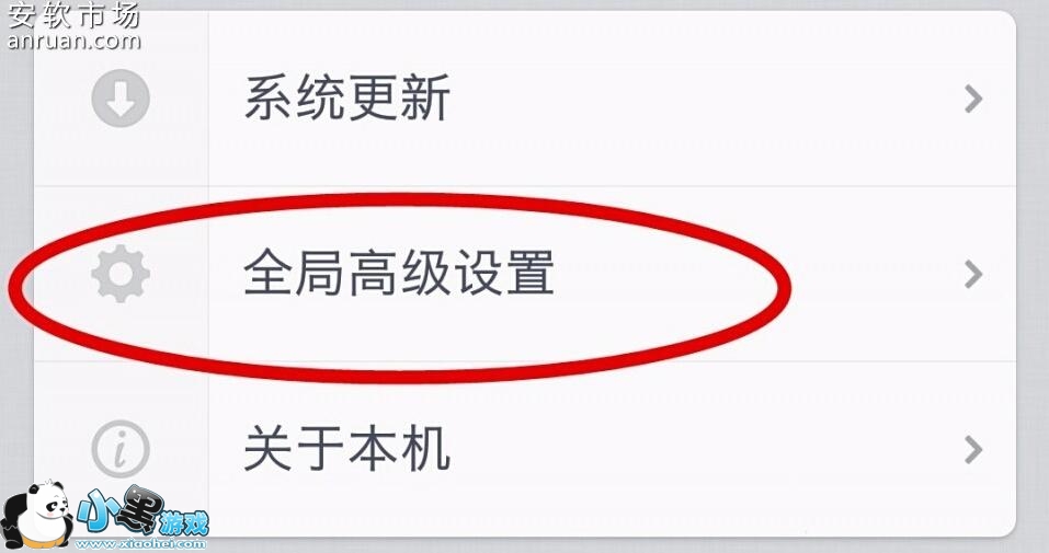 4、然后返回设置界面,找到底部的全局高级设置,打开它,如下图所示