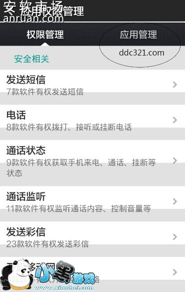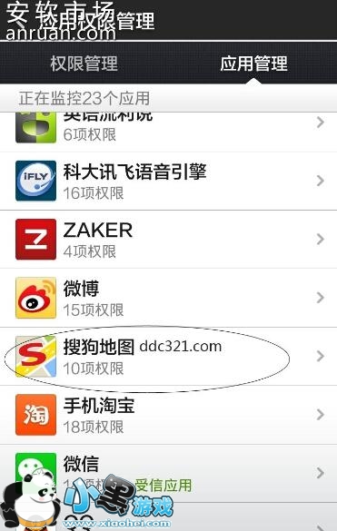 4、进到应用权限管理界面以后,点击应用管理这一栏,如下图所示