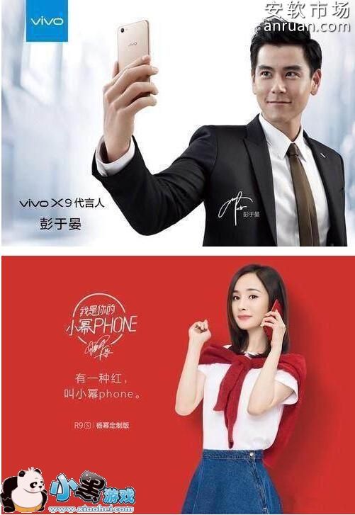 最后,代言人:vivo X9:彭于晏;oppo R9s:杨幂。