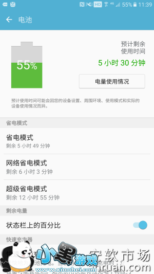 另外,C5内置一颗2700毫安的电池,尽管容量相比那些动辄三四千的并不算很大,但在C5这样纤薄的机身下,这一容量已经不算小,且三星的智能管理器功能,可以很好地进行电池管理,并设置了省电模式、网络省电模式、超级省电模式三档省电模式,在紧急快没电的情况下,可以选择超级省电模式延长续航。另外值得一提的是,三星Galaxy C5还支持快速充电功能,所以即使没电了也能及时补充能量,无需担心。