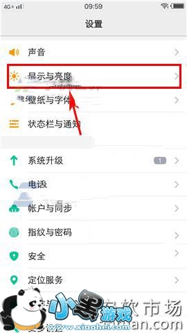 1)首先打开手机【设置】菜单,进入设置菜单后点击【显示与亮度】选项。(如下图)