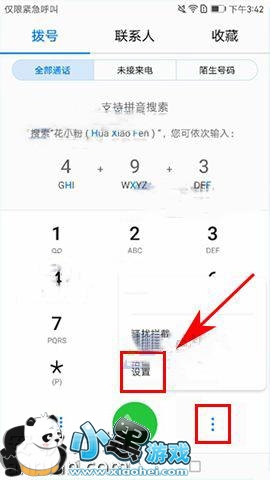1)打开手机的【拨号】应用,进入拨号界面后点击右下角的菜单按钮,再点击【设置】。(如下图)