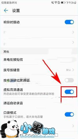 2)在拨号设置界面把【虚拟高清通话】选项开启就行了,这样就能让通话质量得到提升。(如下图)