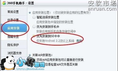 进入设置后,选择安装文件一栏,然后选择优先将程序安装到没存卡。