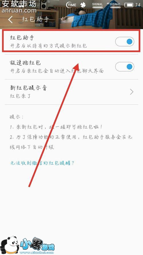 2)在辅助功能界面可以看到【红包助手】,点击打开后把开关开启,再根据需要设置【红包提醒铃声】和【极速抢红包】即可。(如下图)