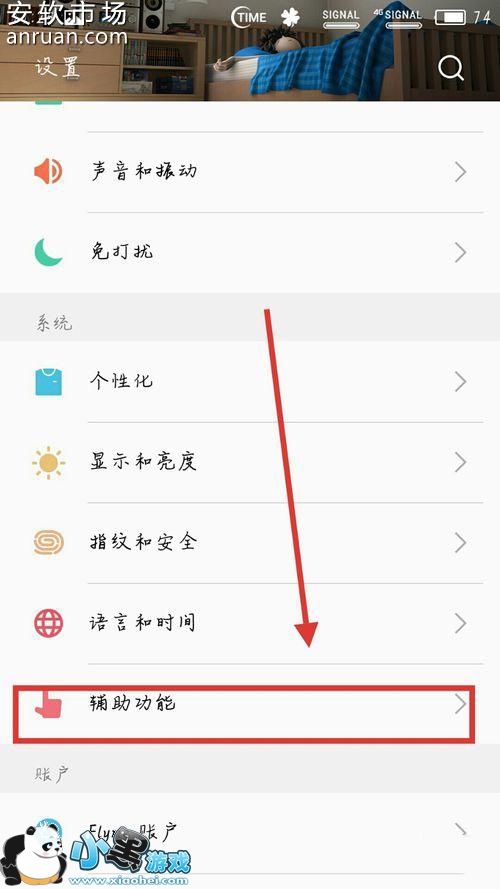 1)打开手机【设置】菜单,进入设置菜单后点击【辅助功能】选项。(如下图)