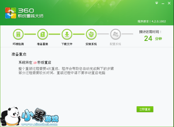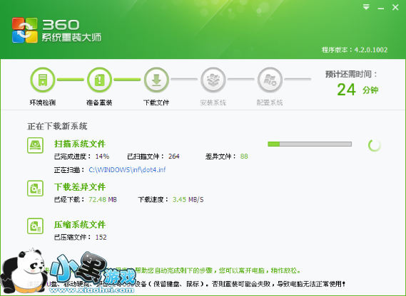 4、下载完成后开始重装系统,由于是不完全的重装,所以重装速度相较于一键重装也是快了许多,不过这种重装会有文件残留,提速不如一键重装明显。