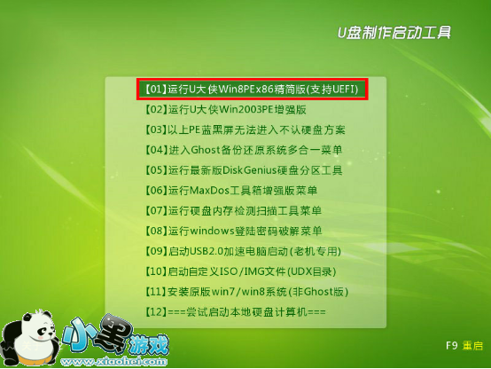 3、设置好之后按F10保存重启,电脑就会从U盘启动,在这个界面选择PE系统就可以进入可视化操作。