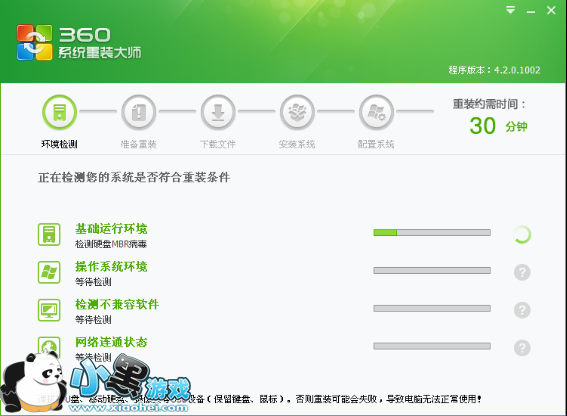 2、重装大师会对系统环境进行全面检测,包括一些会影响重装的特殊病毒检测,这点还是比较安全的。