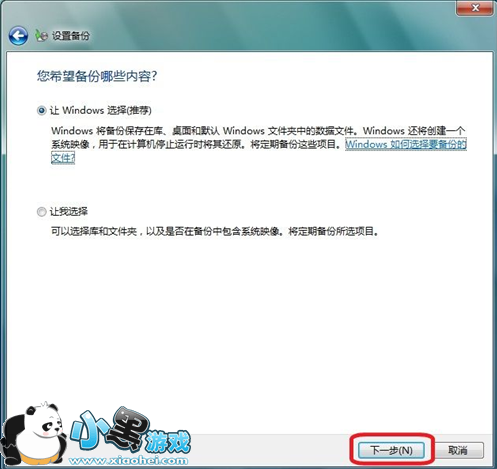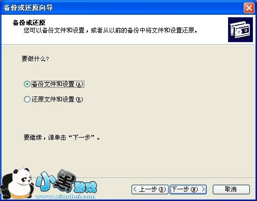 3、既然要备份系统当然是选择“备份文件和设置”,下一步