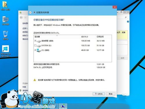 6.勾选需要备份的系统分区和系统保留(引导分区),点击下一步开始进行备份,备份会生成windowsimagebackup,是系统映像备份文件