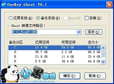 XP系统下载友情提示:保存GHO文件的硬盘要足够大,不然会备份失败