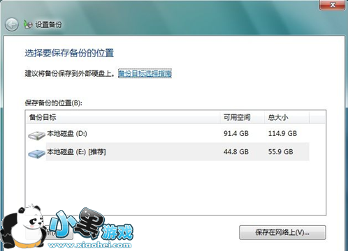 3.选择备份位置,任何超过1G的磁盘以及DVD刻录机会显示在此。