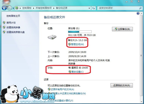 7.备份完成,显示备份大小。此时可以管理备份空间,更改计划设置等。至此,本地备份完成。