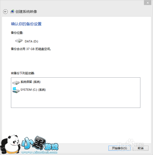 5.界面提示将会备份的内容,因为我创建了100M系统保留隐藏分区来保存系统引导文件,所以会提示将会备份系统保留分区