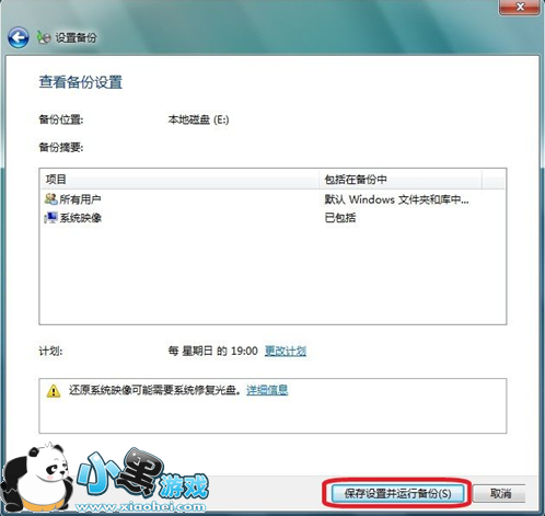 5.点下一步后出现备份信息,点击保存设置并运行备份。