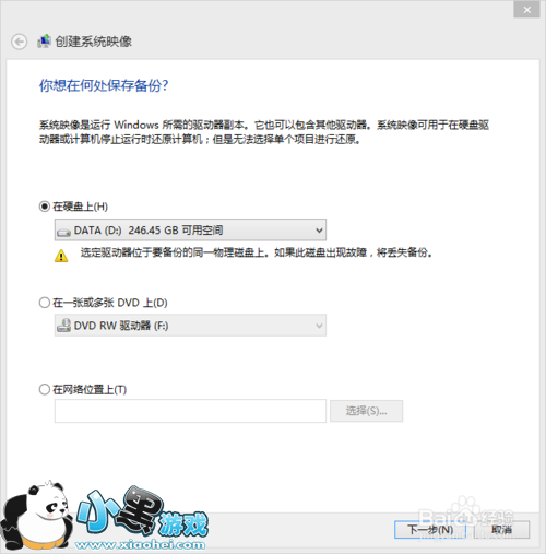 5.创建系统映像-在硬盘上-选择备份文件的保存分区