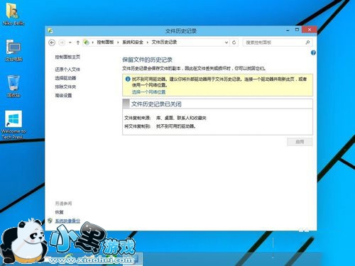 2.点击文件历史记录,文件历史记录可以保存备份您计算机的文档/图片等副本,而Windows 7时代的系统镜像备份也在文件历史记录处
