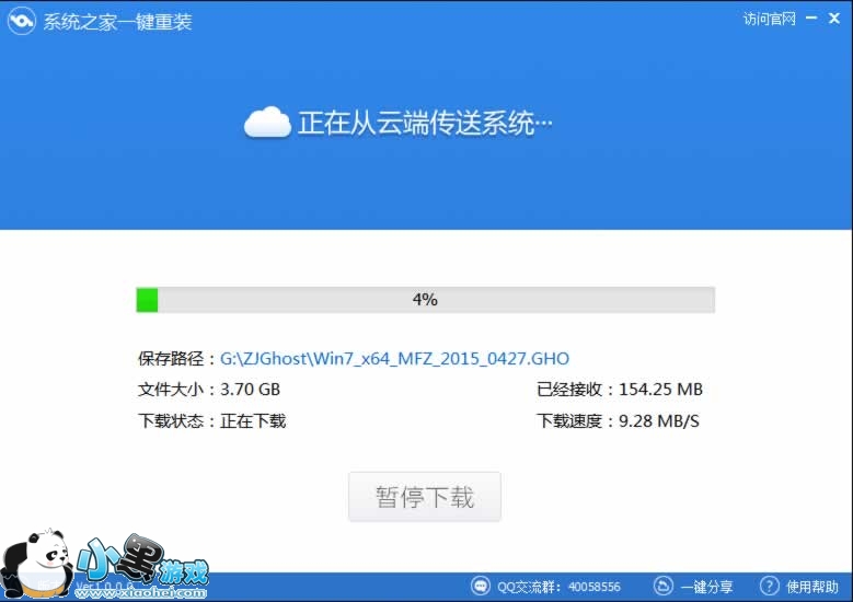 3、软件开始下载你所选定的系统Ghost,从界面上可以清晰明了地观察到各种数据。系统之家提供高达每秒10多兆的瞬时下载速度,当然根据每个用户终端的网络带宽及下载环境的不同会有很大差异,请大家在下载过程中耐心等待: