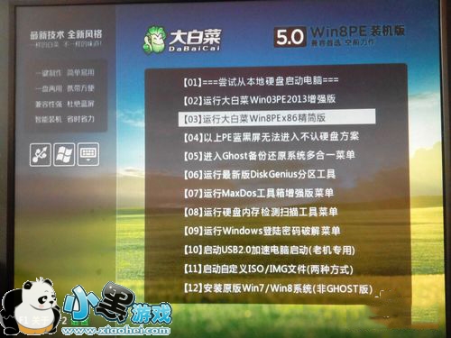 4.U盘启动电脑后会出现如图所示画面,选择WIN8启动。