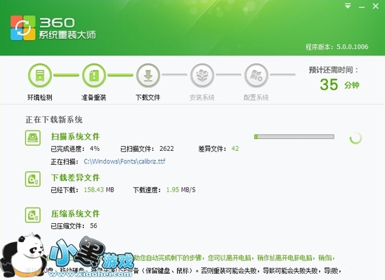 360重装系统优点:由于采用对比覆盖安装方法,很多系统文件无需重复下载,那么重装速度也就快很多了。