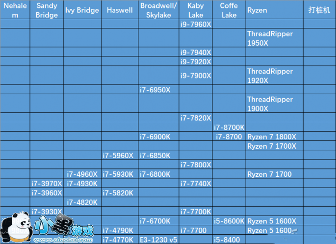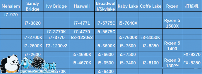 到了高端产品这个级别,CPU就少多了,小编也终于能把表格合二为一。如果是老电脑升级,i7-2600K是个非常好的选择,不仅价格合理,而且还能超频,性价比突出。如果是新装电脑,Ryzen 3、5都是不错的选择,尤其是两款尾号带X的产品。