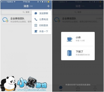 另外,“下班”模式也值得点赞,在企业微信中设有“小休及下班”模式,开启后员工是不会接收到任何信息的,在工作之外给员工留一个相对私密的生活空间,下班后可以让大家喘口气。