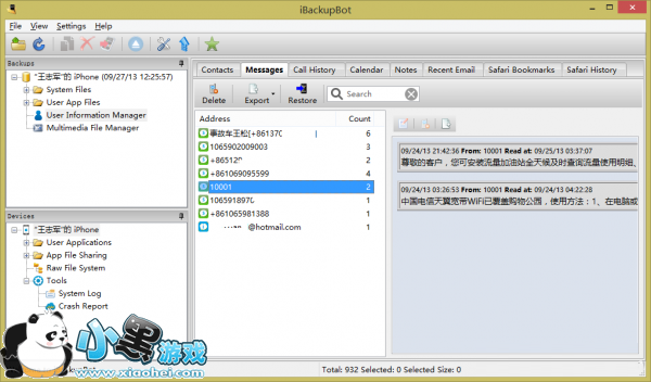 当然,iBackupBot还有很多的其他功能,例如“User Information Manager”可以查看通讯录、查看信息、查看备忘录,甚至也可以查看Safari的书签和浏览历史(图3),“Multimedia File Manager”可以查看照片和视频内容,如果是注册版本,那么可以实现数据的导入和导出,感兴趣的朋友不妨一试。