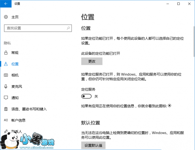 对于网络游戏流畅性,网络延迟也是影响流畅性一个重要因素。网络延迟优化可以根据自己实际网络情况进行优化,比如使用WiFi上网的Windows 10笔记本用户,由于系统默认开启“定位功能”,这样系统会在后台不停的扫描出附近热点列表,然后根据扫描到的热点MAC地址对比数据库实现定位,这种频繁的扫描就会导致网络出现延迟。因此这类用户可以进入“设置→隐私位置→关闭定位服务”来解决网络延迟的问题(图5)。