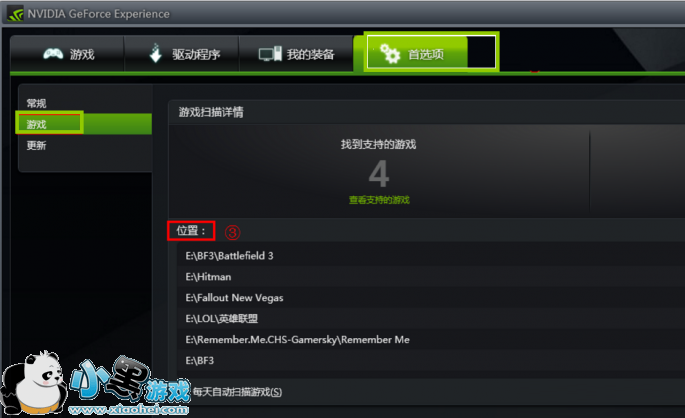 显卡功能是影响游戏性能一个重要因素,大家可以根据自己显卡进行有针对性的优化。比如N卡用户可以利用官方提供的“Geforce Experience”进行游戏自动优化。启动程序后点击“首选项→游戏→添加→现在扫描”,这样程序会自动扫描本机安装的游戏,如果你安装的游戏没有扫描到,可以点击“添加”,自行添加游戏安装目录(图3)。