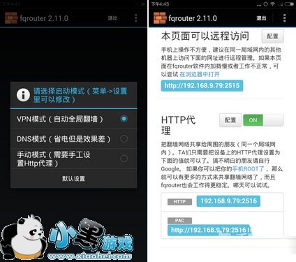 打开“翻墙路由器”时软件会提醒大家选择启动模式,这里我们选择VPN模式即可。之后联网的过程中软件会提示我们更新,大家忽略就可以了。之后切换页面并打开HTTP协议,这时“翻墙路由器”就设置完成了。