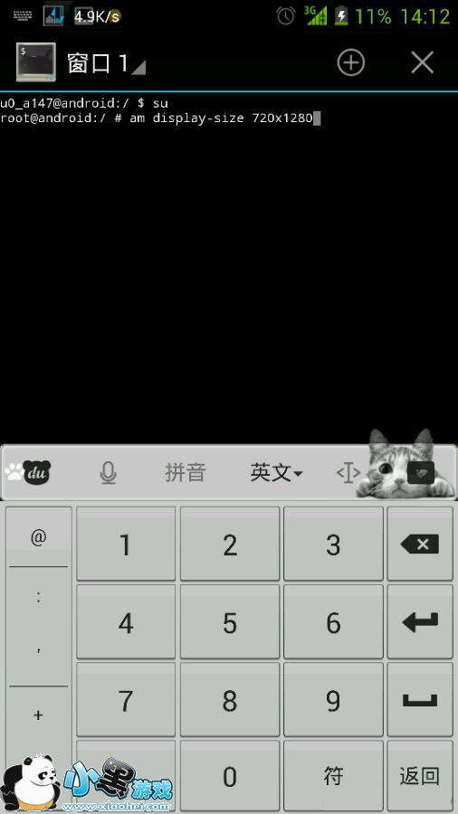 接下来,我们还需在手机上运行“终端模拟器”(下载地址:http://www.dwz.cn/uoJux)。首先输入“su”回车,然后再输入“amdisplay-size 720x1280”(其中x为英文字符)回车,最后点击模拟器右上角的退出按钮(图2),重启手机即可。