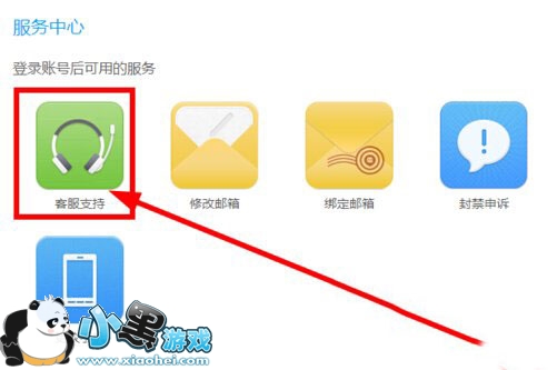 登陆成功了以后,我们会重新返回服务中心,这里我们先选择客户支持点击进入,如下图所示: