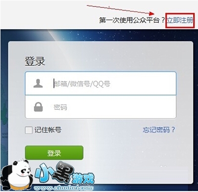 1、进入到“微信公众平台登录界面”,点击“立即注册”;