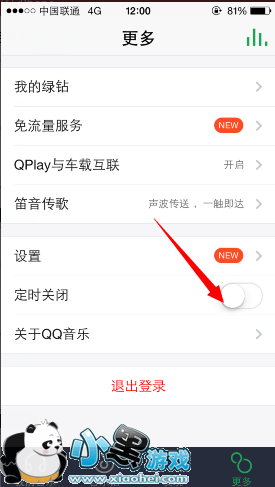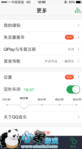 第一步、登录手机QQ音乐,在更多选项里我们可以看到定时关闭的选项,点击打开;