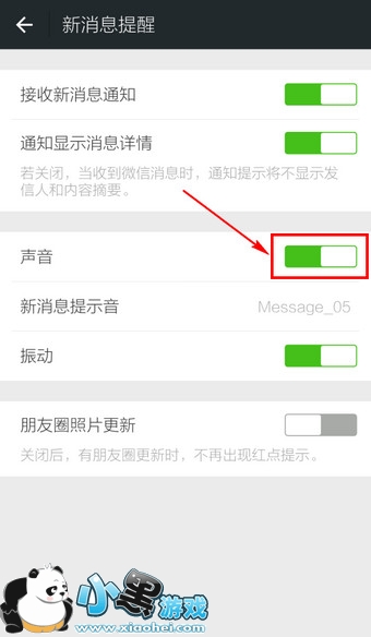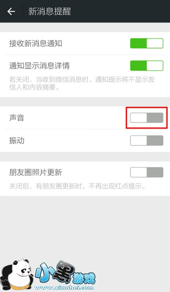 5.按钮变为灰色表示已关闭微信声音。