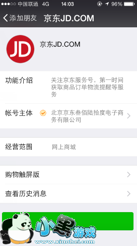 1、首先用微信关注京东JD.COM;