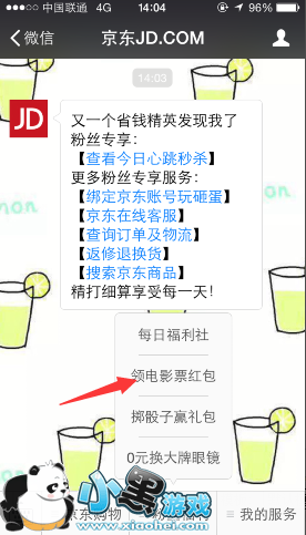 2、在微信公众号里点击粉丝福利就即可看到电影票红包,如图;
