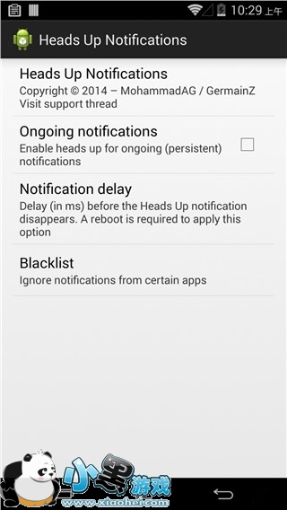 Blacklist:黑名单中的应用不会有浮动窗口的效果,勾选你想加入黑名单的应用即可,无需重启。