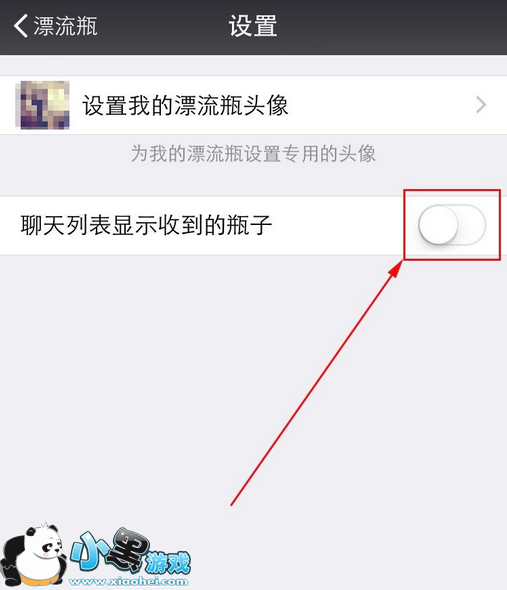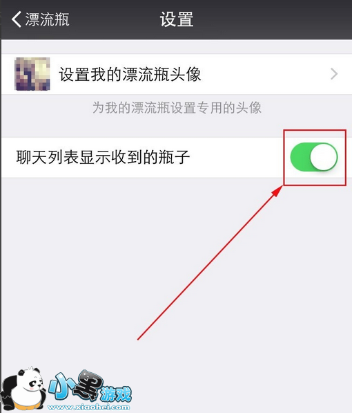 进入“设置”界面后,我们在该界面下可以看到“聊天列表显示收到的瓶子”命令,此时将右侧绿色按钮如下图红色框选中处向左滑动取消该命令。