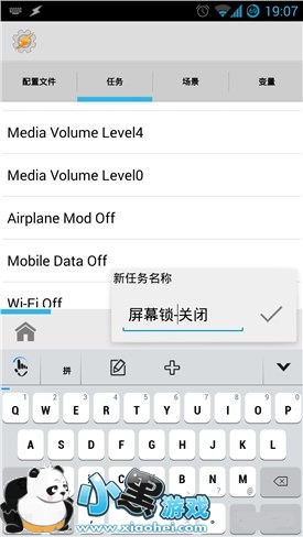 点击「任务」页面右下角「+」,新建名为「屏幕锁-关闭」的任务;