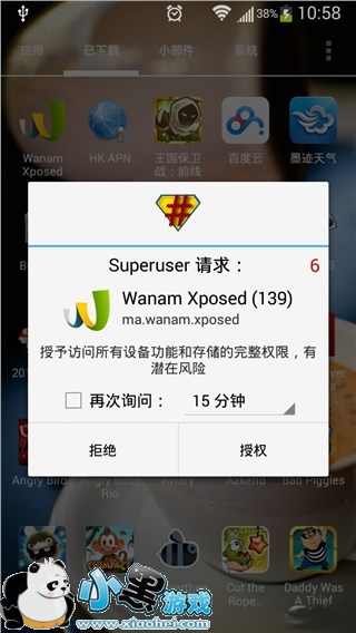 Wanam Xposed安装后需要在Xposed框架中勾选应用,按提示重启手机后就可打开使用了,第一次打开Wanam Xposed需要ROOT授权,在权限管理软件中进行授权即可。