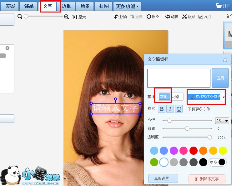 2、进入美图秀秀,点击文字。在文字编辑框中选择字体样式的时候就选择你安装的字体了(如下图)